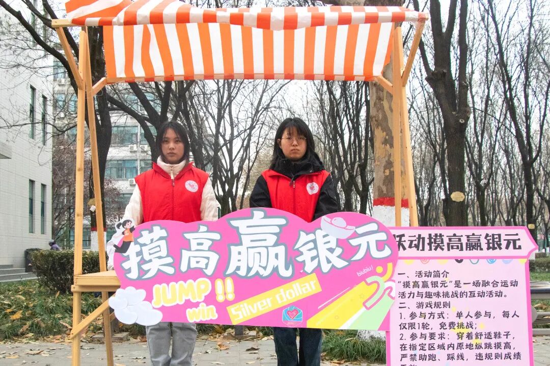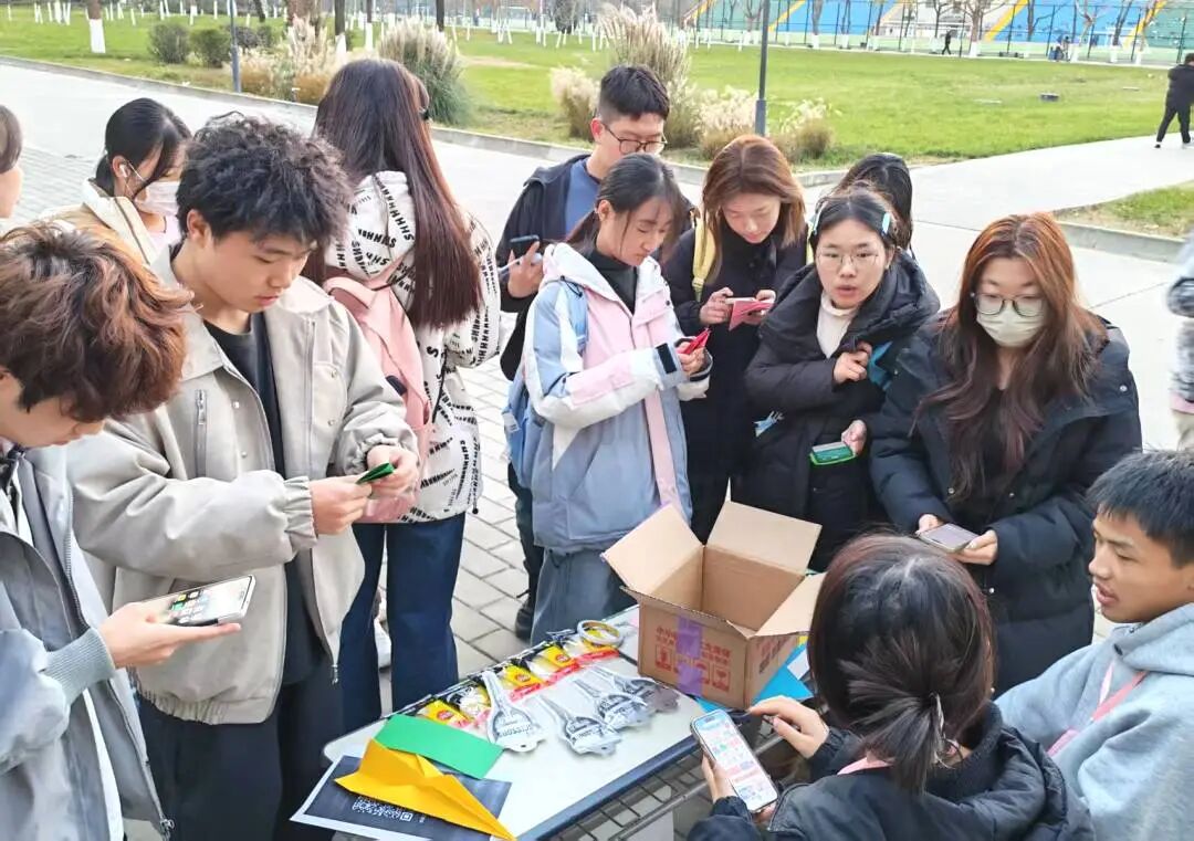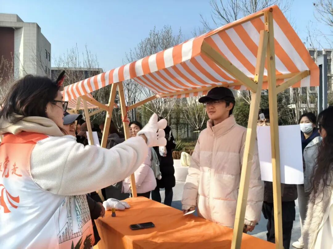 环保区,师生用回收的咖啡渣制作生态杯与香牌,在动手实践中深化低碳理念;非遗区,扎染、漆扇、剪纸等体验项目,让传统文化在指尖焕发新生;互动区,投壶、摸高等趣味游戏吸引了众多参与者,欢声笑语不断;服务区,志愿者们熬制的冬日暖茶与定制茶点,以及隐藏在各处的“互动NPC”,让温暖在细节中悄然传递。