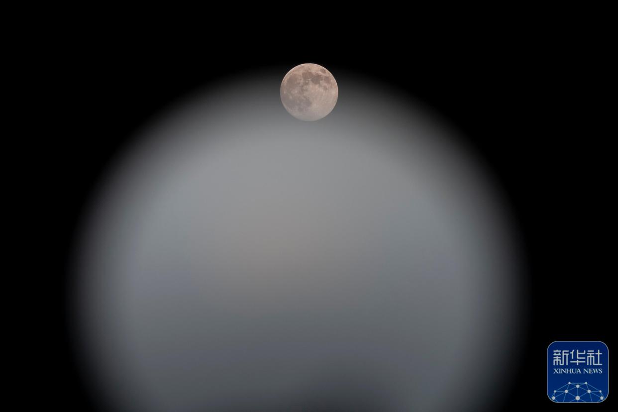 ↑ 12月4日在黑龙江省哈尔滨市拍摄的月亮。新华社记者 张涛 摄