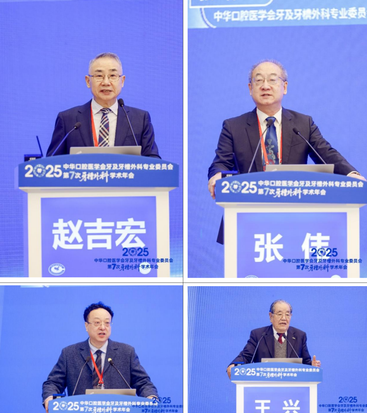 开幕式由中华口腔医学会牙及牙槽外科专业委员会主任委员、武汉大学口腔医院赵吉宏教授主持。中华口腔医学会牙及牙槽外科专业委员会候任主任委员、北京大学口腔医院张伟教授,西安交通大学口腔医院院长李昂教授,中华口腔医学会名誉会长、北京大学口腔医院王兴教授分别致辞,对大会召开表示祝贺,并对学科发展寄予深厚期望。