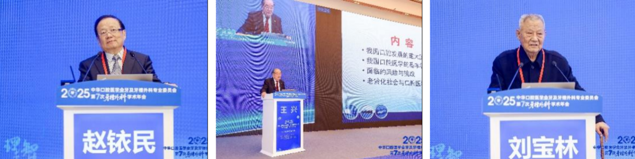 中国工程院院士赵铱民、中华口腔医学会会长郭传瑸教授等来自全国顶尖学术机构的知名专家出席会议,大会规模宏大、阵容强大,充分体现了我国牙槽外科领域的学术影响力与凝聚力。在“大师主旨演讲”环节,专家们围绕智能化技术、学科发展战略及人才培养等核心议题带来演讲,赵铱民院士系统梳理医用机器人发展的最新进展,展望人工智能赋能口腔外科的广阔前景;王兴教授对我国口腔医学发展现状进行了深刻分析,提出学科交叉融合的重要方向;刘宝林教授回顾我国口腔颌面外科发展历程,并对青年医师提出期望。