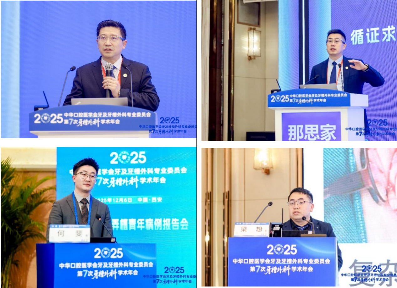 作为承办方,西安交通大学口腔医院多位专家在主题演讲、技术论坛、青年专场及护理专场中发言,充分展现医院在口腔外科领域的综合实力。屠军波副院长、那思家主任受邀作专家论坛报告,分享现代化口腔外科建设的系统思考和数字化AI的牙槽外科新方向;何斐、梁想、韩庭威等医生在“智创未来”新技术板块展示机器人辅助手术、实时导航等创新实践;何斐医生在青年病例报告会上呈现高难度即刻种植案例,获得大赛铜质病例;张莹护士长、陈娜护士围绕镇静技术与医护协作路径分享经验,展现护理团队专业与温度。医院团队的学术表现获得与会专家广泛认可,进一步提升了西安交通大学口腔医院在国内牙槽外科领域的影响力。
