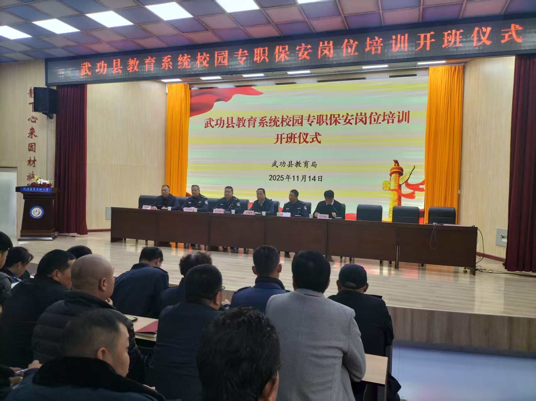 阳光讯(记者赵小康通讯员王维文/图)近日,武功县公安局联合教育部门组织开展了校园专职保安岗位专项培训。培训内容丰富实用,涵盖安全防范知识、应急处置技能、法律法规解读等多个方面,通过理论授课与实操演练相结合的方式,全面提升保安人员的综合能力。12月5日,“金盾护苗”校园保安培训结业发证仪式在武功县公安局隆重举行,标志着本轮系统性培训工作圆满收官。