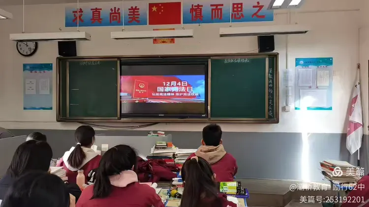 3、组织观看教育部“宪法晨读”直播活动学校积极动员并组织学生通过教育部全国青少年普法网直播平台,观看了12月4日上午10:00-11:20由教育部主会场举办的第十二个国家宪法日教育系统“宪法晨读”活动。同学们通过观看升旗仪式、宪法晨读、合唱《宪法伴我们成长》歌曲、聆听第十届全国学生“学宪法讲宪法”比赛获奖名单及优秀作品展演等环节,接受了更为系统和直观的宪法教育,感受到了全国范围内弘扬宪法精神的浓厚氛围,进一步激发了学习宪法的热情。