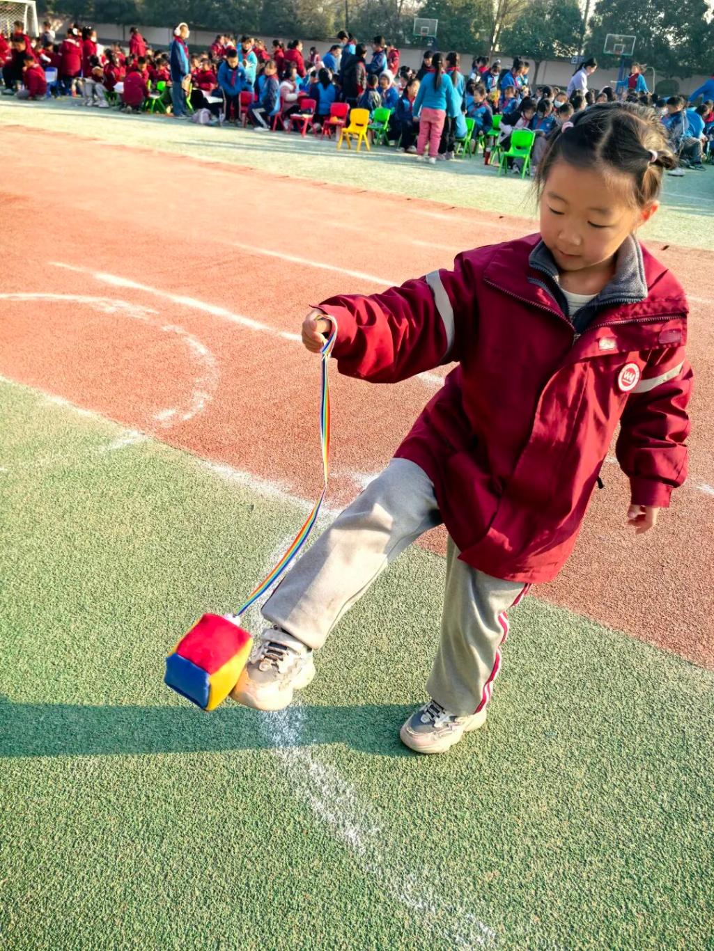 集体项目更是精彩纷呈。一二年级的拔河比赛中,小队员们紧握长绳、齐心协力,通红的小脸写满坚持,场外加油声此起彼伏、震耳欲聋;3-6年级的一字8长绳项目,队员们配合默契、鱼贯而入,绳影翻飞间,展现出强大的团队凝聚力。每一个跳跃的身影、每一次奋力的呐喊,都诠释着“更高、更快、更强”的体育精神,也定格成校园里最鲜活的成长画面。