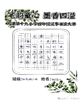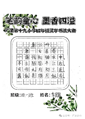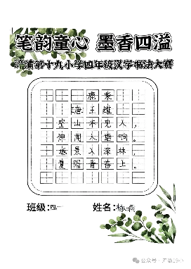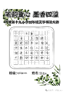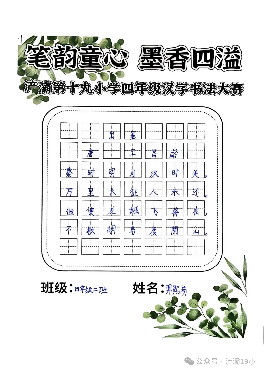 阳光讯(记者 张允铎 通讯员 白雪)汉字被誉为世界上最富魅力的表意文字之一。为弘扬中华民族传统文化,激发学生书写兴趣,培养其规范美观书写汉字的能力,进一步养成良好书写习惯,经过周密筹备,西安市浐灞第十九小学四年级近日隆重举行了“笔韵童心 墨香四溢”汉字书法大赛。