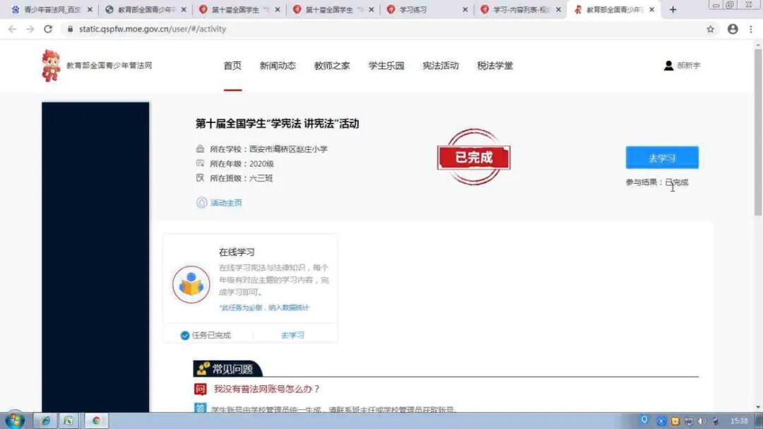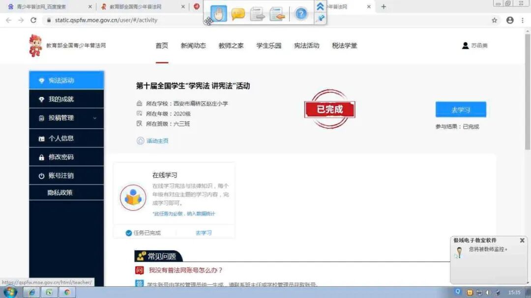 云端闯关 争当宪法小卫士