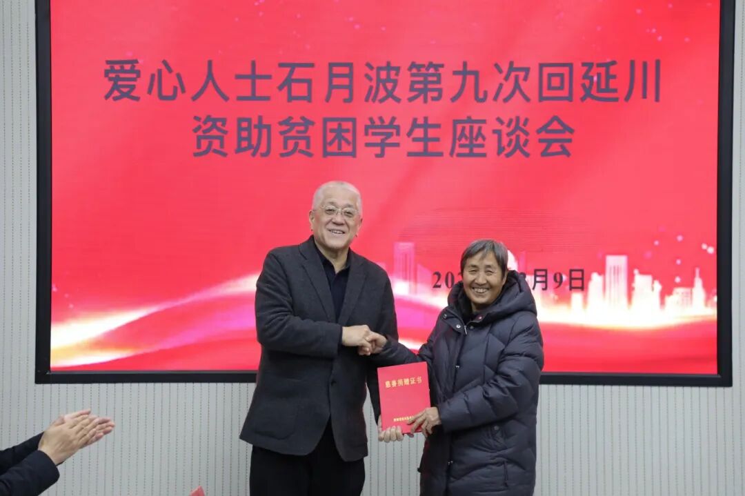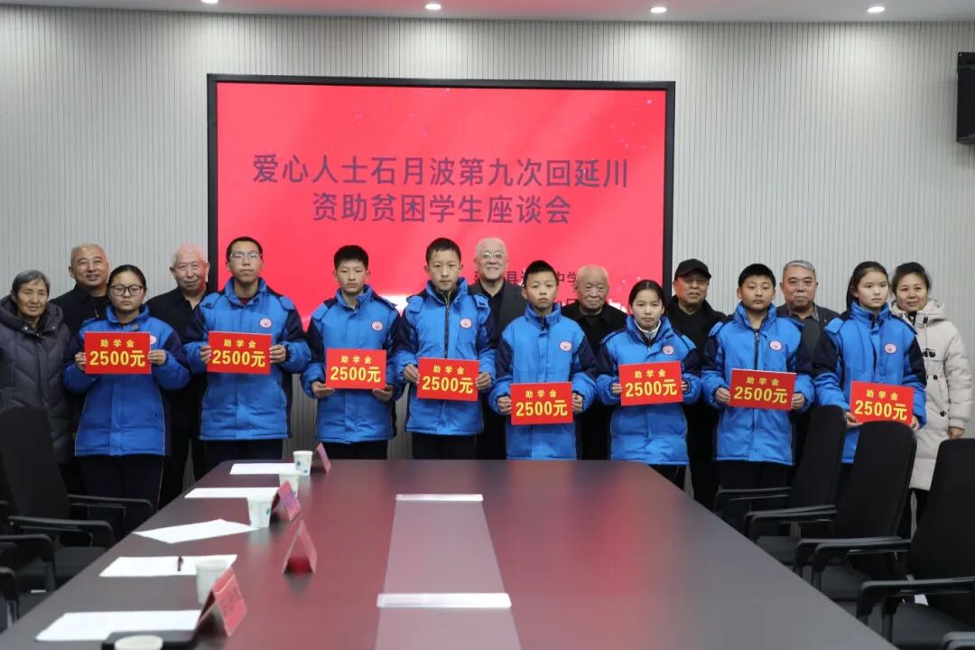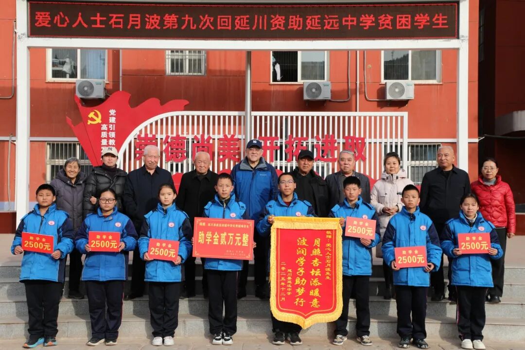九载情系桑梓,大爱点亮希望。12月9日,石月波爱心团队第九次重返家乡,在延川县延远中学举行爱心助学活动,为8名贫困家庭学子发放助学金共2万元。这份爱心捐赠,让孩子们在这个寒冷的冬季深切感受到慈善的温暖和社会的关爱。