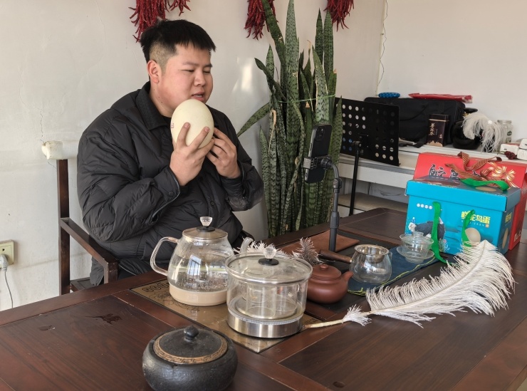除了易于养殖的优势,鸵鸟带来的经济效益也是养殖户选择养殖鸵鸟的关键因素。鸵鸟肉是高蛋白、低脂肪、低胆固醇的健康红肉,鸵鸟蛋的营养价值也极高,鸵鸟皮和鸵鸟毛更是制作高档鞋包、工艺品的优质原料。为了扩大销售,养殖场积极拥抱互联网,主要依托电商平台,通过直播带货的方式,将鸵鸟苗、鸵鸟肉、鸵鸟蛋等产品销往各地。