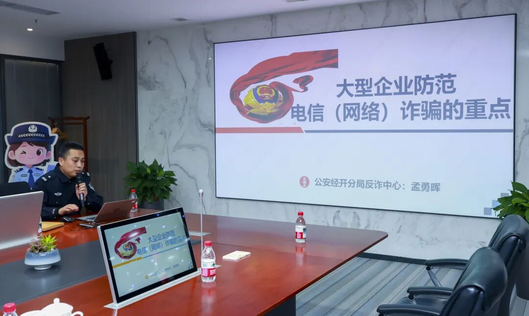 阳光讯 (记者 熊玺 文/图)为进一步深化警企协同共治,提升企业员工防范电信网络诈骗的意识和能力,筑牢企业与员工财产安全防线,12月9日下午,西安市公安局经开分局“经锐反诈服务队”联合尚稷路派出所,走进隆基绿能科技有限公司,开展“警企共治防诈骗”全员警示宣讲活动。分局副局长张权,治安大队、刑侦大队、尚稷路派出所及新闻舆情专班等单位负责人参加活动,隆基绿能集团线上线下共计150余名员工代表积极参与。