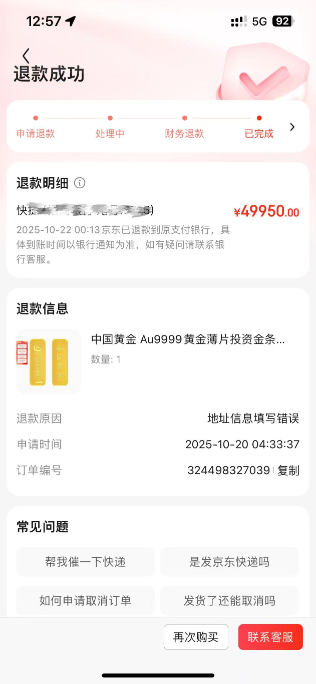 接警后,值班民警陈立辉、辅警李鹏意识到情急,每耽误一分钟,钱款被转移的风险就增加一分。所里立刻启动追赃挽损机制,兵分两路展开行动:一路民警迅速联系京东客服和京东快递,详细说明情况并提供相关证明,请求协助拦截已寄出的黄金快递。经过反复沟通协调,快递最终在运输途中被成功截停。另一路民警则紧急对接银行客服,说明这是诈骗转账,申请警银联动对港币账户的3万元进行紧急止付和冻结。