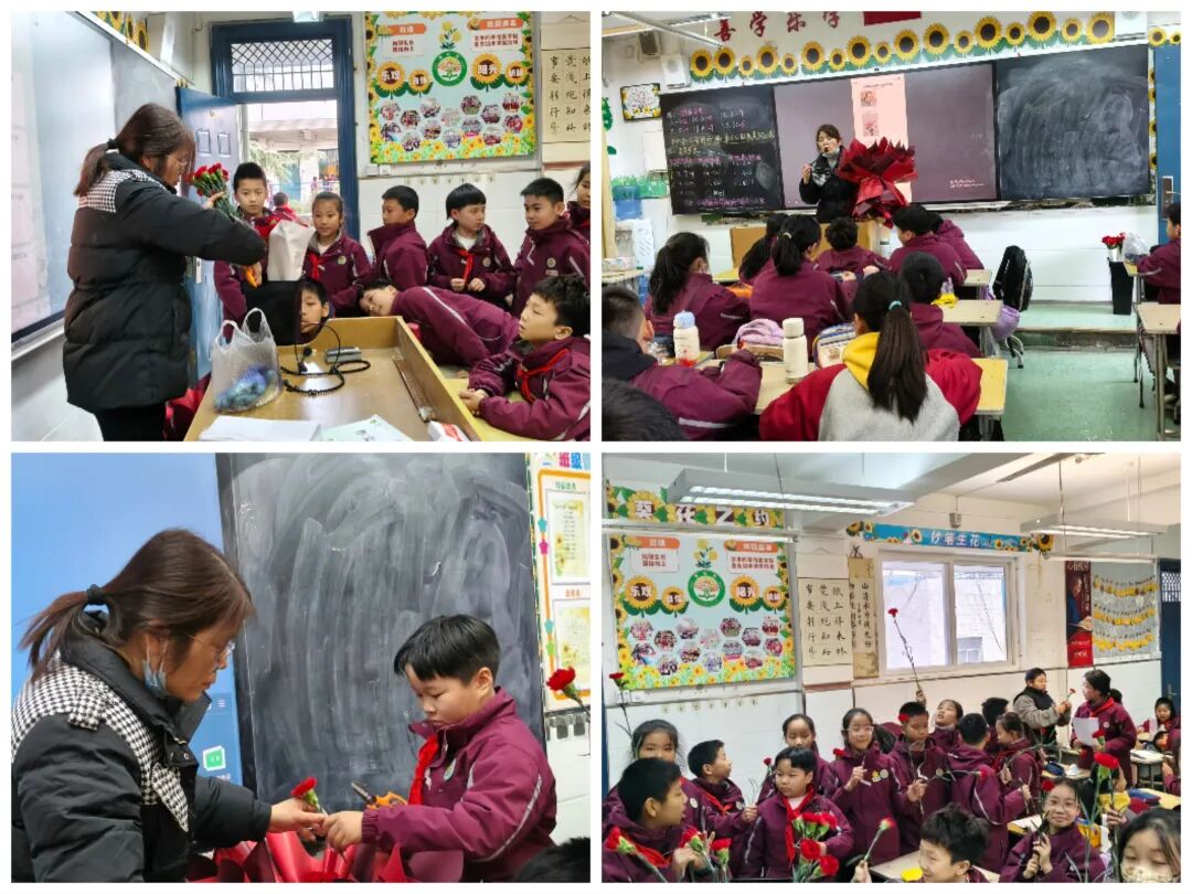 五一班盖安彤妈妈带领同学们走进缤纷花世界。课堂上,安彤妈妈先带大家认识玫瑰、康乃馨等花材,科普鲜花养护知识;随后教学手打螺旋这一插花难点技巧,再讲解插花基本方法。同学们分组动手实践,在老师的悉心指导下完成专属花艺作品,并参与了作品分享与评价。课后大家收获鲜花礼物,在提升动手与审美能力的同时,也感受了花艺的独特魅力。