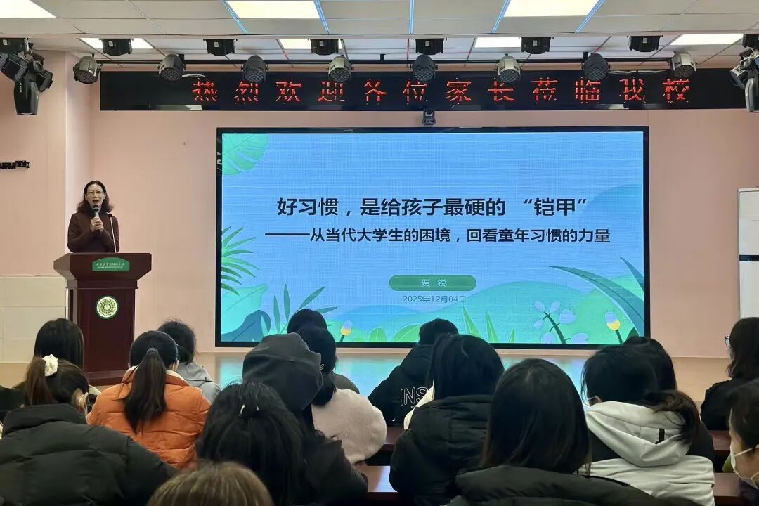 学校特邀国家二级心理咨询师、心理咨询师培训师贾锐老师举办家庭教育讲座,为家长们提供科学的育儿理念与方法,助力构建和谐亲子关系。贾锐老师在讲座中指出,好习惯是孩子面对未来的“心理铠甲”。当代大学生面临的拖延、焦虑、社交困境等问题,根源多在于童年时期关键习惯的缺失。小学阶段正是培养学习专注、情绪管理、社交自理等核心习惯的黄金期。家长应以身作则,耐心引导,与学校携手,在孩子心中播下习惯的种子,为他们的终身成长储备最坚实的心理资本。家长们受益匪浅,通过一个个真实鲜活的事例,深刻认识到培养孩子良好习惯的重要性。