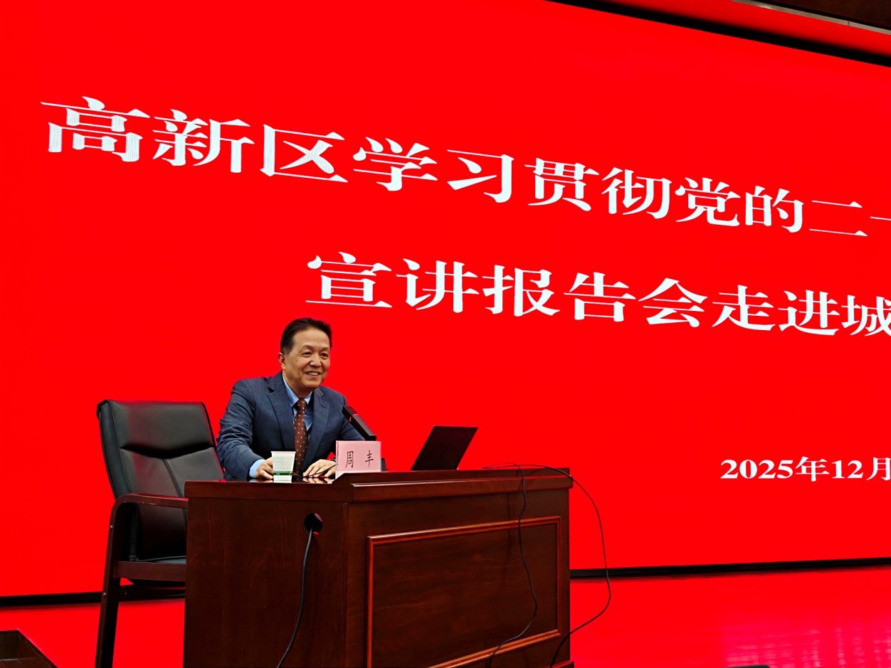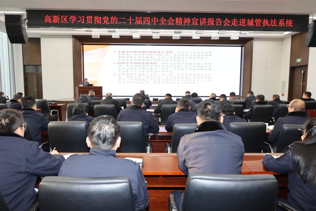 12月8日,西安高新区学习贯彻党的二十届四中全会精神宣讲报告会走进城管执法系统,邀请西安市委党校教授周丰作专题宣讲。西安高新区城市管理和综合执法局领导班子成员、局(执法大队)各部门、各街道执法中队负责人;局(执法大队)全体党员干部参加。