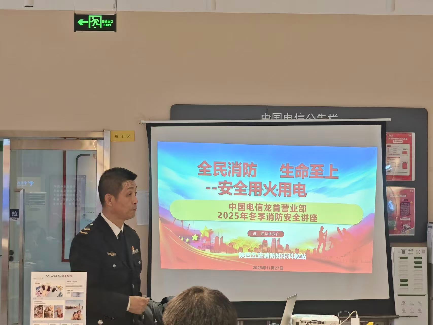 西安龙首营业厅邀请消防救援站专业人员,开展消防知识普及和应急培训。通过理论讲解与实物演示相结合的方式,详细介绍了灭火器、灭火毯、消防栓等常用器材的使用方法,拆解了火灾报警流程、初期火灾扑救技巧、疏散逃生注意事项等关键技能。