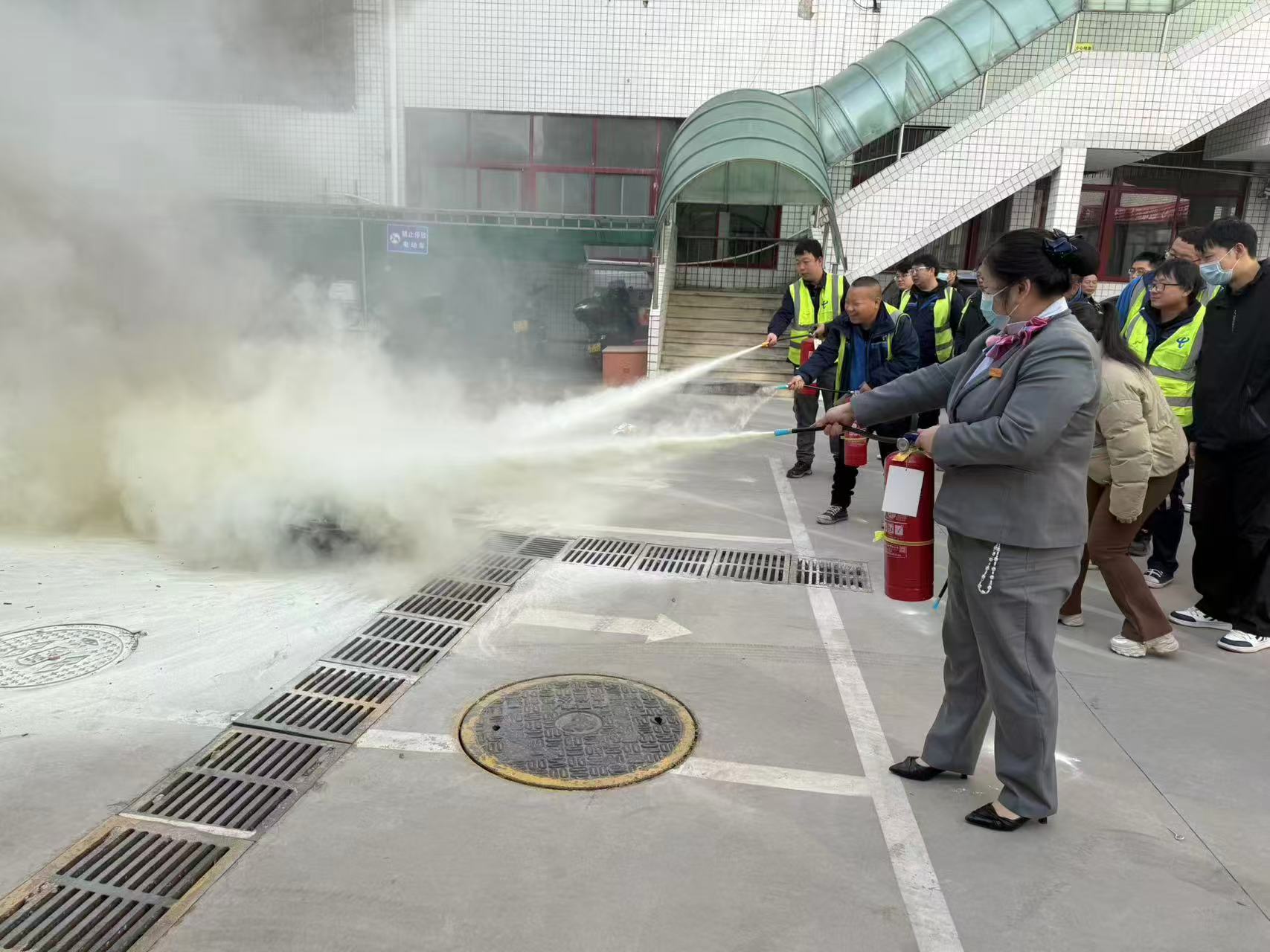 宝鸡陈仓中心营业厅组织周边社区用户,开展消防安全微课堂,邀请消防救援站专业人员,与电信“爱心大使”并肩开展消防安全知识普及,通过“提、拔、握、压”四步口诀演示干粉灭火器操作,现场邀请用户上手模拟,让安全技能触手可及。