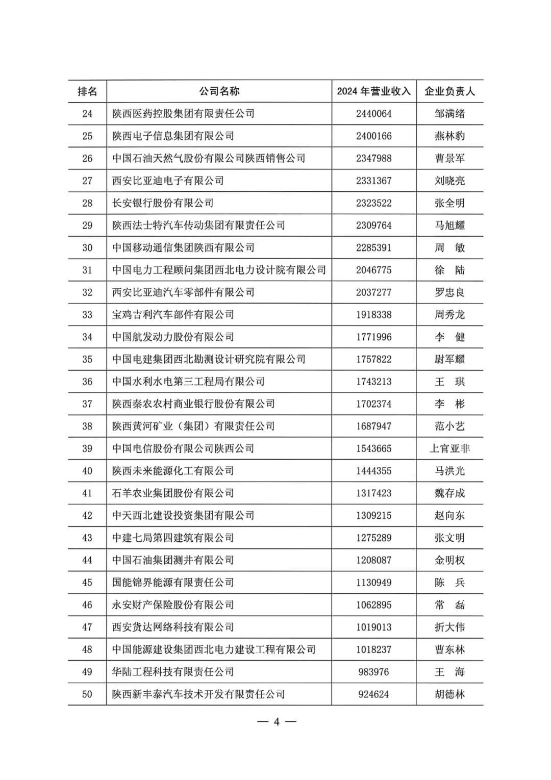 2025陕西100强企业及民营50强企业排序是按照国际通行的方式,参照中国500强企业排序办法,坚持公平公正、不向企业收取费用等原则,依据企业2024年度营业收入,在企业自愿申报的基础上进行排序,并经“陕西省100强企业审定委员会”审定后产生。