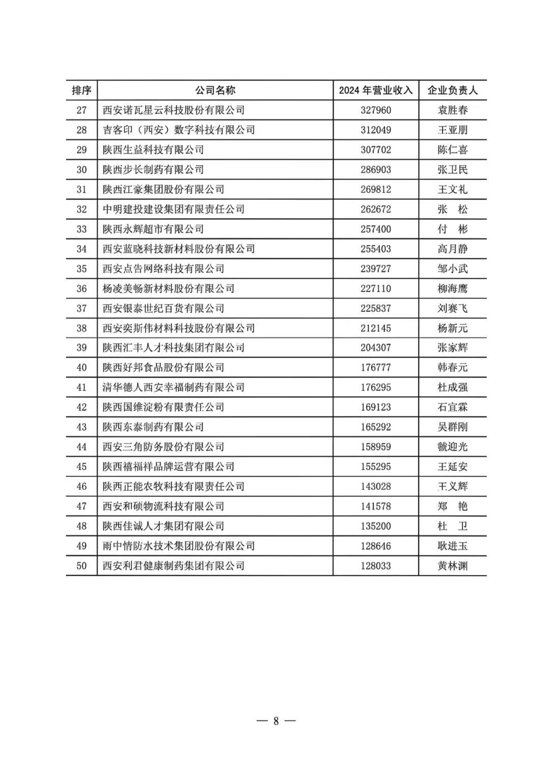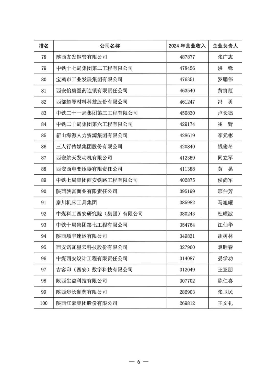 陕西省企业家协会相关负责人介绍,今年以来,在省发展改革委、工信厅、财政厅、人社厅、商务厅、国资委、统计局、省委金融办、省总工会等部门的大力支持下,陕西省企业家协会继续组织开展了2025陕西100强企业和陕西民营50强企业排序工作,并编印了《2025陕西100强企业分析报告》。