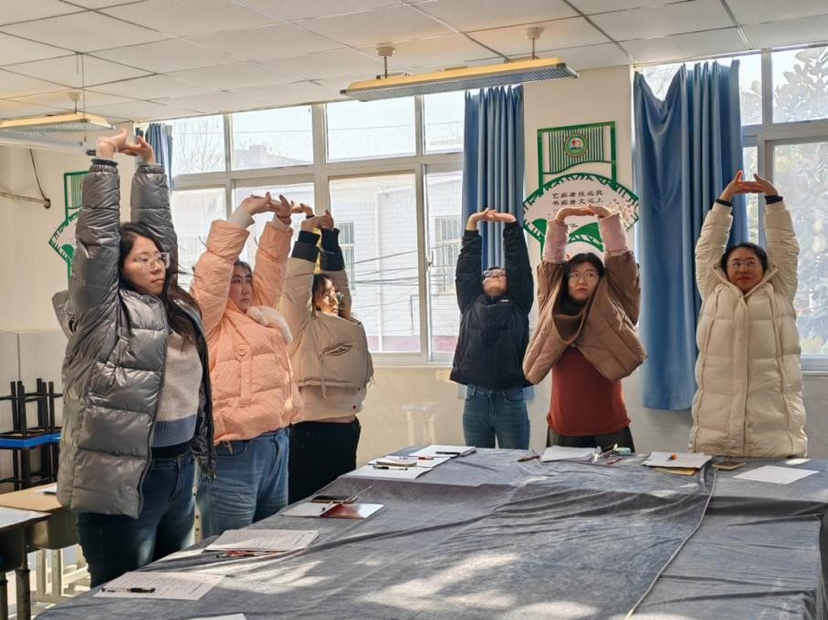 在情绪调节方法讲解环节,王老师带领全体教师开展了深度减压放松体验活动。他现场示范了深呼吸、渐进性肌肉松弛、冥想等实用放松技巧,并细致指导教师们逐一练习。这些简单易操作的方法,能够帮助教师在感到紧张焦虑时,快速调整身心状态,重归平静。