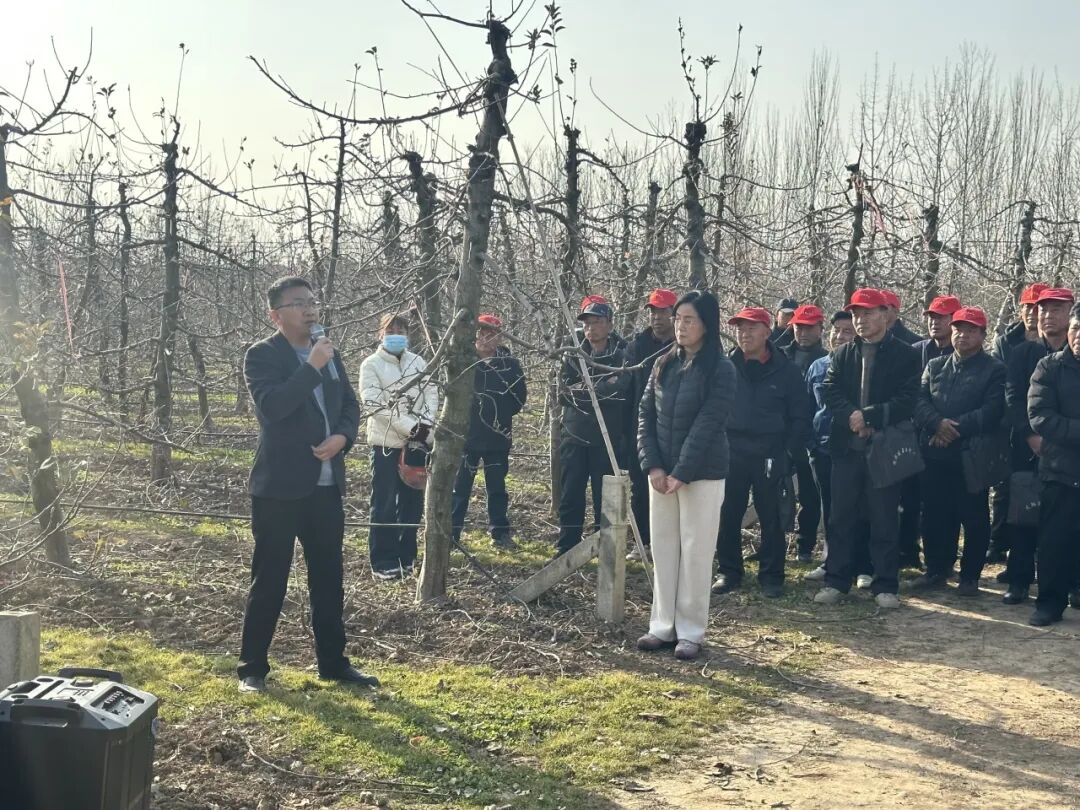 阳光讯(记者 芮扬 张伟 通讯员 首媛媛)冬日果园迎“干货”,技术赋能暖农心。12月10日下午,区农业农村局聚焦冬季果园管理关键期,将苹果产业提质增效、安全生产等重点工作部署与实操技术培训相结合,在范家寨镇绿宝果业园区主持召开冬季果园管理技术培训现场会。区农业局领导、果品专家曹儒先生带队授课,各相关镇分管领导、农业综合技术服务站站长、果园管理人员、农技人员齐聚田间地头,沉浸式学习果树管护知识、掌握实操技能,为果树安全越冬、来年产业增收夯实基础。