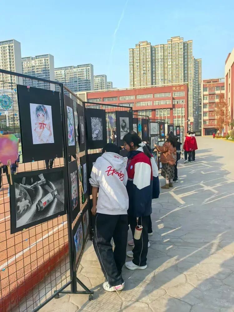 经过美术教师团队的专业评审,优秀作品在校园集中展出。或写实或写意,或清新或厚重,每一幅都凝聚着学子的巧思与热忱,成为校园里最动人的风景线。