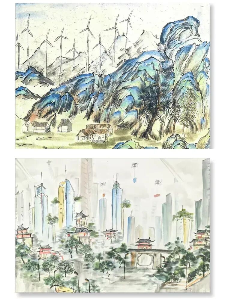作品中,有对校园日常的细腻刻画,每一笔都饱含对校园生活的热爱;有对传统文化的传承创新:国风动漫中的衣冠楚楚、非遗元素的创意融合、水墨丹青里的山河辽阔,尽显少年对文化根脉的坚守;更有对家国情怀的深情礼赞:航天梦、强国志在色彩中流淌,展现了新时代青年的责任与担当。