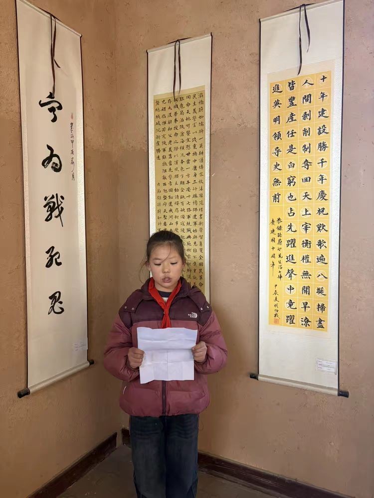 参观途中,新建小学学生代表现场朗诵红色篇目,稚嫩的声音坚定有力,字里行间饱含对革命先辈的缅怀与敬意,将对英雄的崇敬之情转化为朗朗声韵,进一步营造了庄重肃穆的活动氛围,也让在场师生更直观地感受红色文化的感染力。