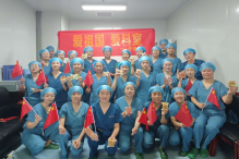 双节同庆情暖手麻科 我们的“家国同圆”时刻当国庆的红旗邂逅中秋的明月,当家国情怀融入科室温暖,手麻科的医护们在科主任、护士长带动下,以一场别样的“双节同庆”活动,书写了属于手麻人的团圆与担当。“爱祖国 爱科室”,我们的信仰与热爱收到领导神秘通知,手麻科全体医护人员提前到岗交班完毕,统一行动身着整齐的刷手服,头戴蓝色手术帽,脸上洋溢着真挚的笑容。