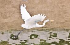 西安护城河护城河上白鹭飞 主动“配合”市民拍照
